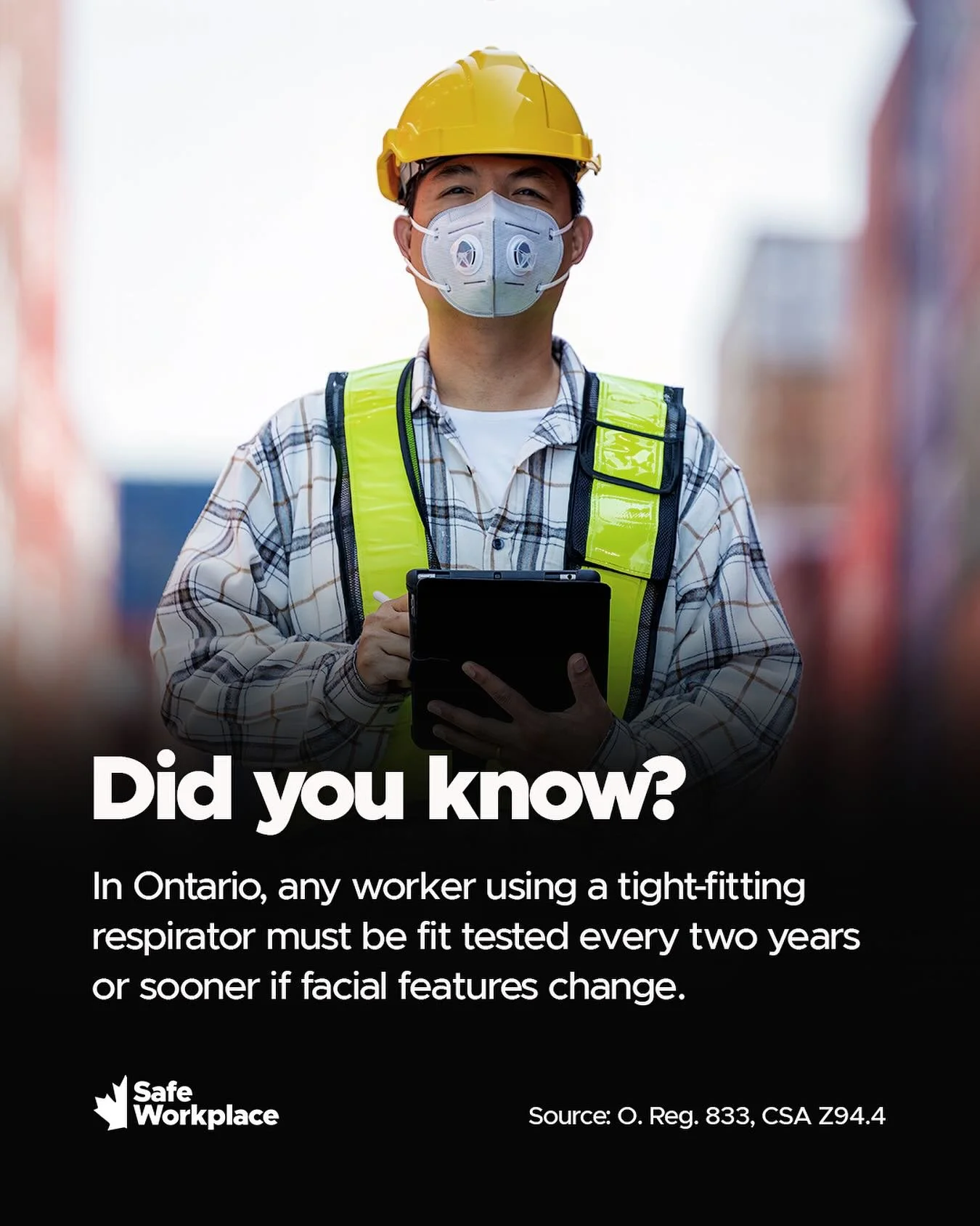 We provide qualitative fit testing to ensure your workers’ respirators form a proper seal and offer the protection required for safe work in hazardous environments. Our testing is conducted in accordance with CSA standards and current occupational health and safety regulations.
